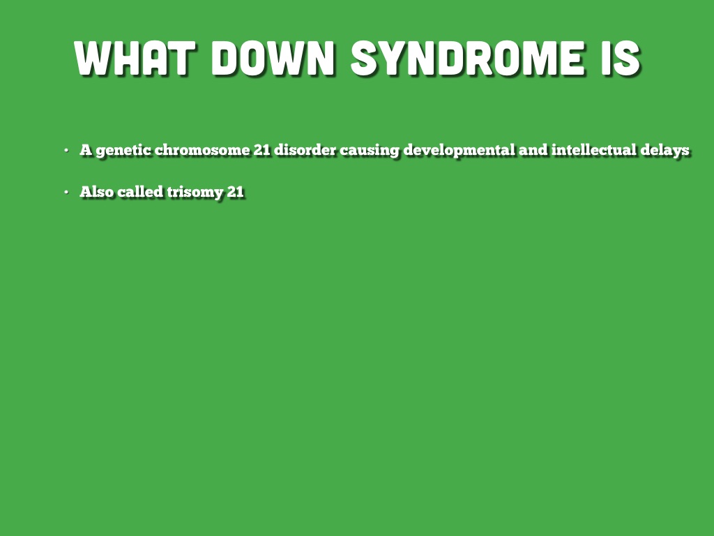 • A genetic chromosome 21 disorder causing developmental and intellectual delays