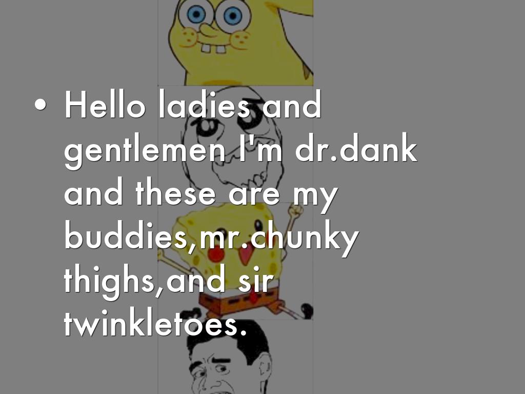 Hello ladies and gentlemen I'm dr.dank and these are my buddies,mr.chunky thighs,and sir twinkletoes.