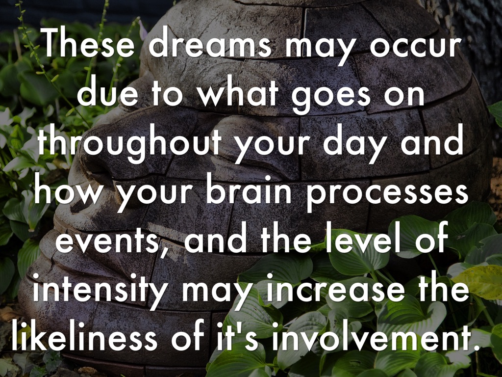 These dreams may occur due to what goes on throughout your day and how your brain processes events, and the level of intensity may increase the likeliness of it's involvement.