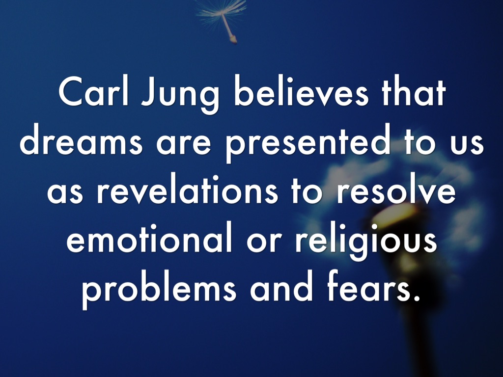 Carl Jung believes that dreams are presented to us as revelations to resolve emotional or religious problems and fears.