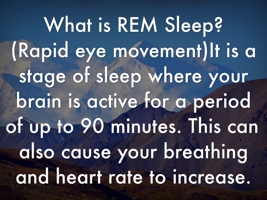 (Rapid eye movement)It is a stage of sleep where your brain is active for a period of up to 90 minutes. This can also cause your breathing and heart rate to increase.