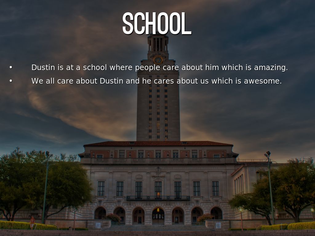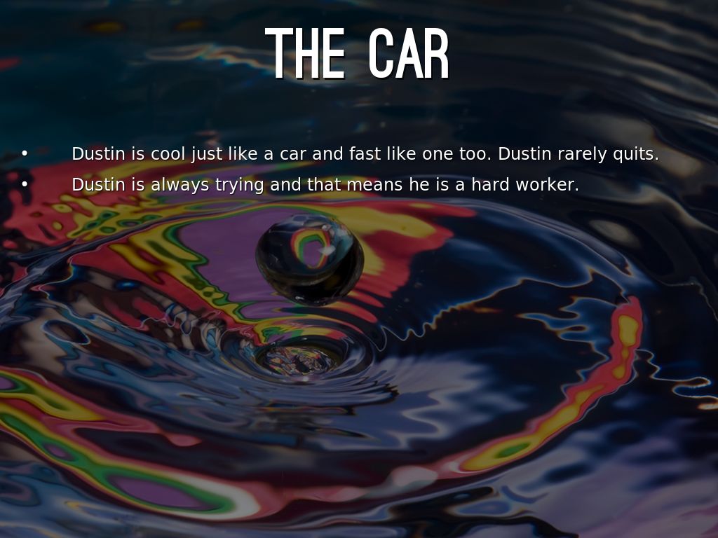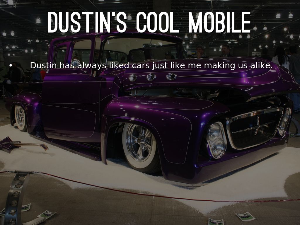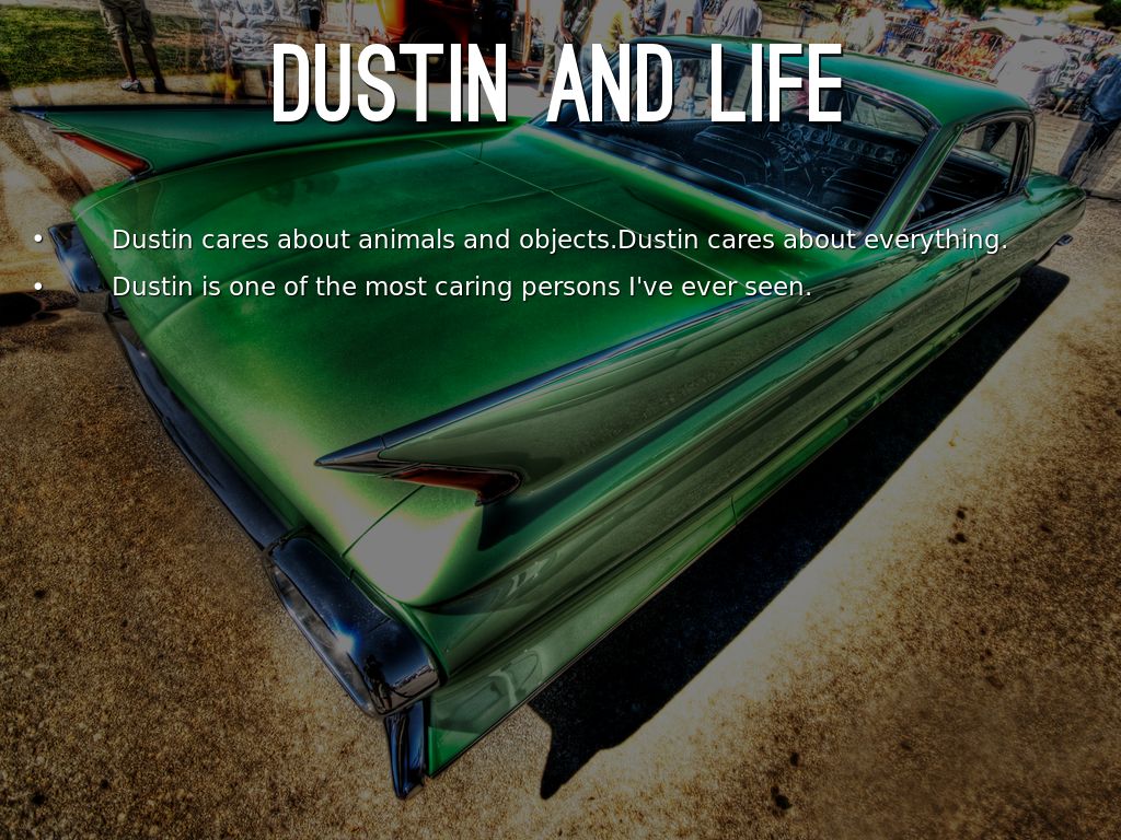 • Dustin is cool just like a car and fast like one too. Dustin rarely quits.