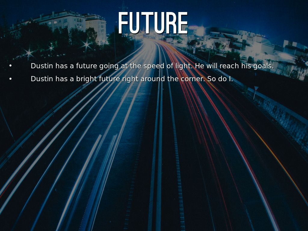 • Dustin has a future going at the speed of light. He will reach his goals.