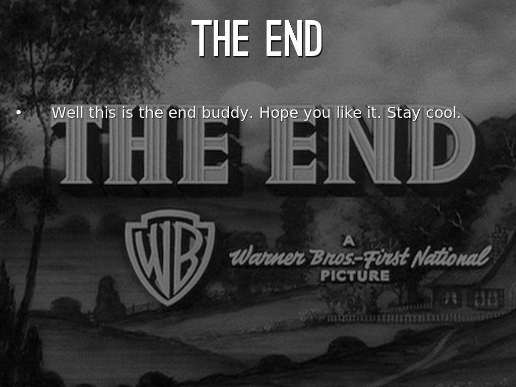 • Well this is the end buddy. Hope you like it. Stay cool.
