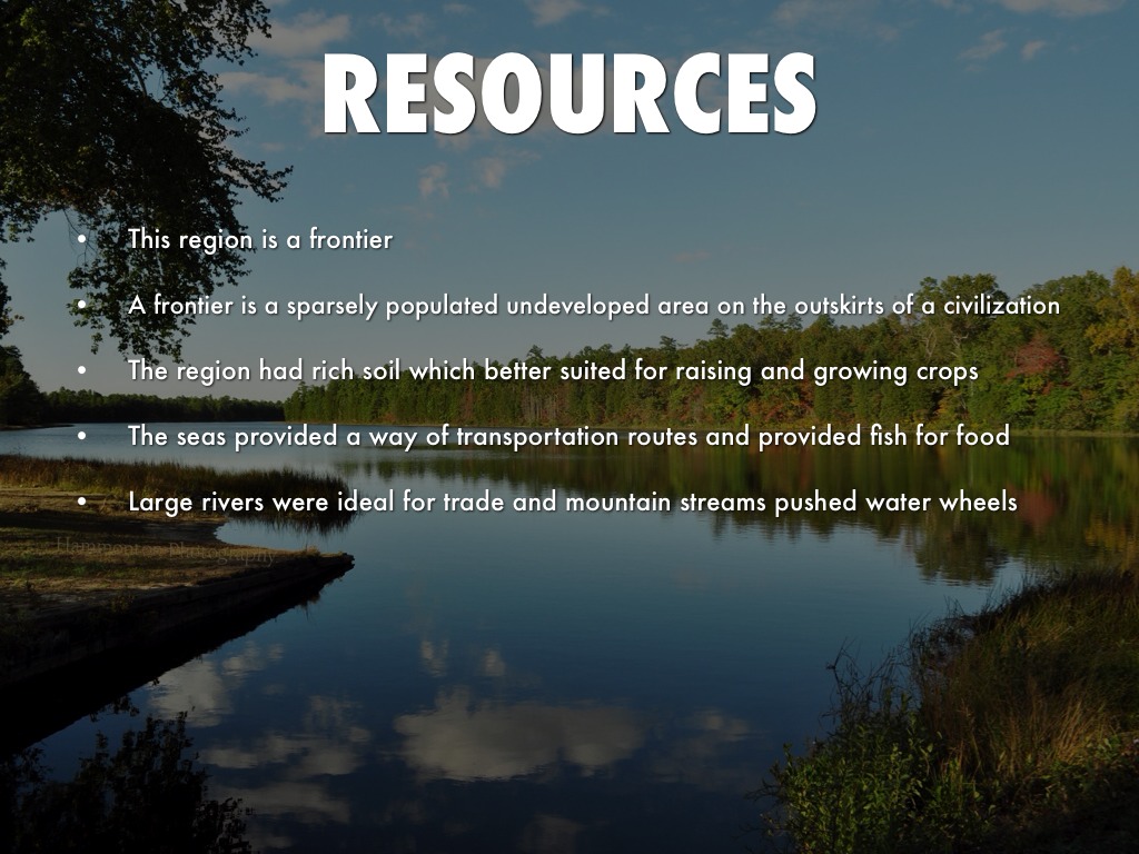 Large rivers were ideal for trade and mountain streams pushed water wheels