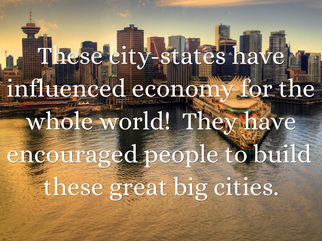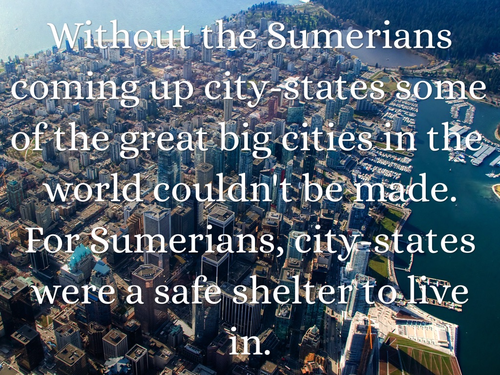 Without the Sumerians coming up city-states some of the great big cities in the world couldn't be made. For Sumerians, city-states were a safe shelter to live in.