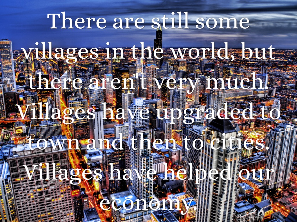 There are still some villages in the world, but there aren't very much. Villages have upgraded to town and then to cities. Villages have helped our economy.