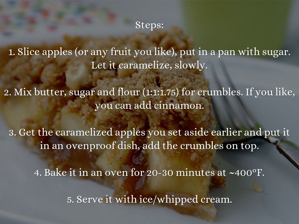 3. Get the caramelized apples you set aside earlier and put it in an ovenproof dish, add the crumbles on top.