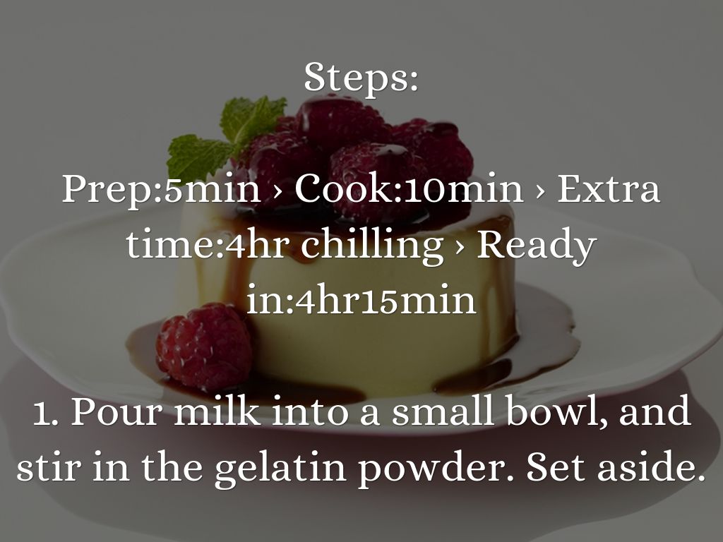 1. Pour milk into a small bowl, and stir in the gelatin powder. Set aside.