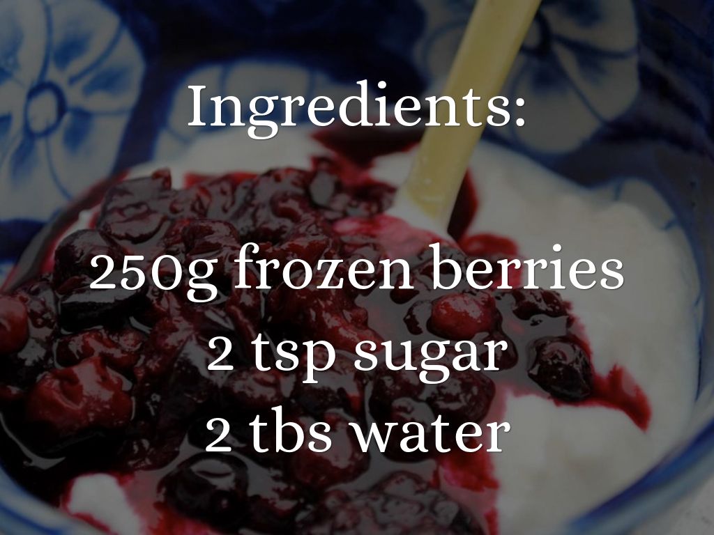 1. In a microwave-safe container, put frozen berries with 2 tsp of sugar and 1 tbs of water.