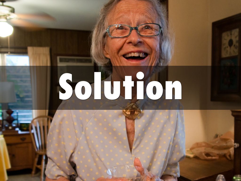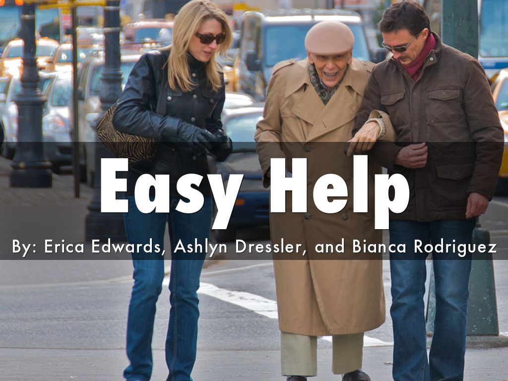 Solution: Easy Help will supply vitamins, groceries, meals, transportation, and a personal assistant for the elderly client. This service will focus on genuine help for the client based on their personal physical and mental needs. This service is available 24 hours a day, 7 days a week per request of the client.