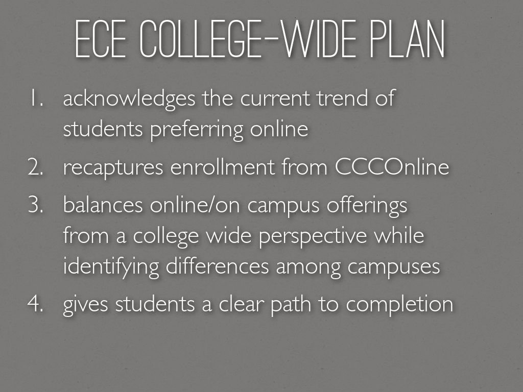 It's clear that we need to adapt and be innovative. The nature of learning and the student experience is coming under scrutiny. We are developing Prior Learning Assessments, staying on the cutting edge of pedagogical delivery, designing stronger competency-based programs that include industry standards as well as 21st century skills (SLOs), changing the role of the teacher, embedded advising and student success strategies, and more.