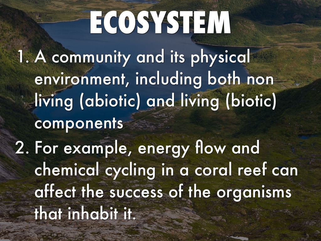 For example, energy flow and chemical cycling in a coral reef can affect the success of the organisms that inhabit it.