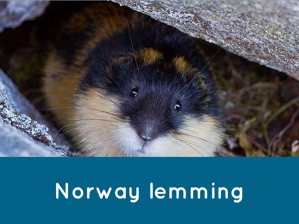Unique animals are the Norway lemmings, the shrew, and the voles