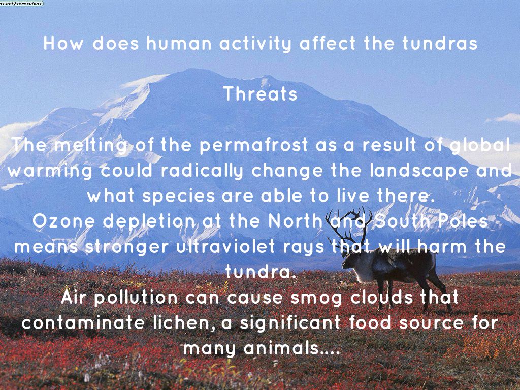Ozone depletion at the North and South Poles means stronger ultraviolet rays that will harm the tundra.