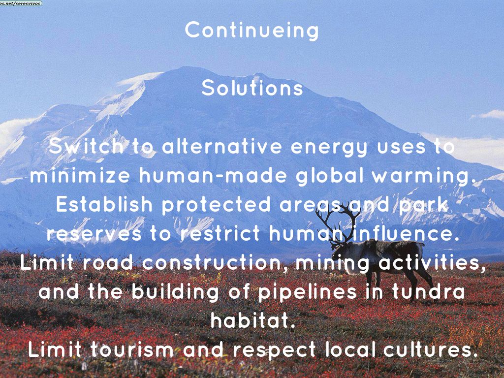 Limit road construction, mining activities, and the building of pipelines in tundra habitat.