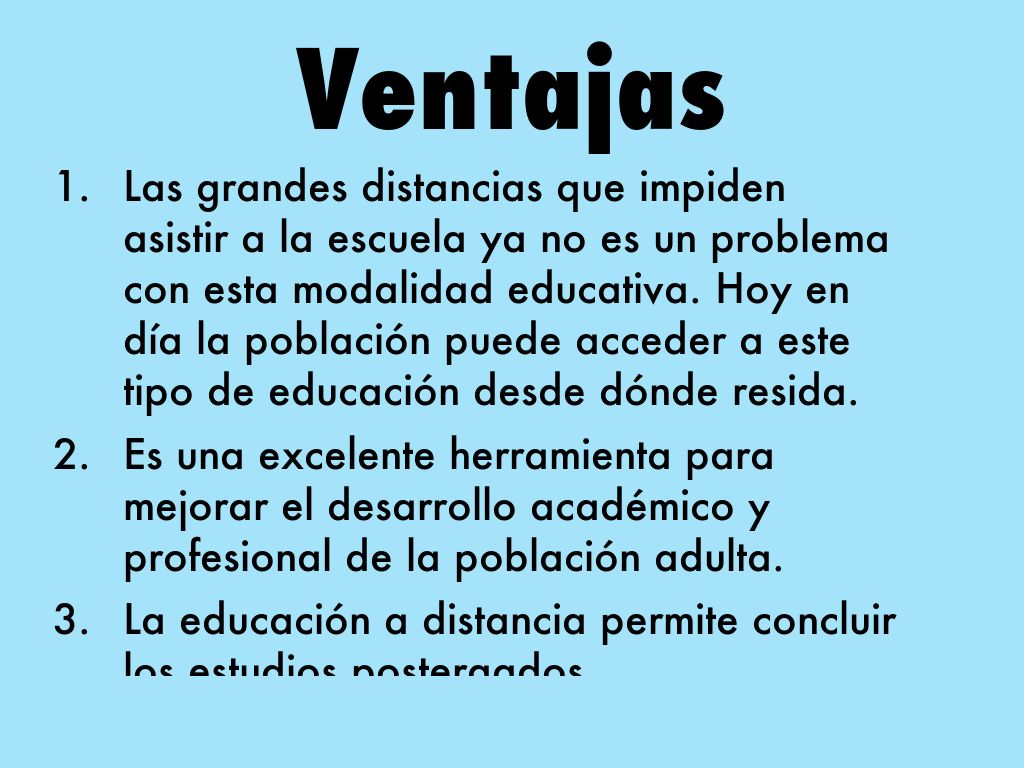 Las grandes distancias que impiden asistir a la escuela ya no es un problema con esta modalidad educativa. Hoy en día la población puede acceder a este tipo de educación desde dónde resida.