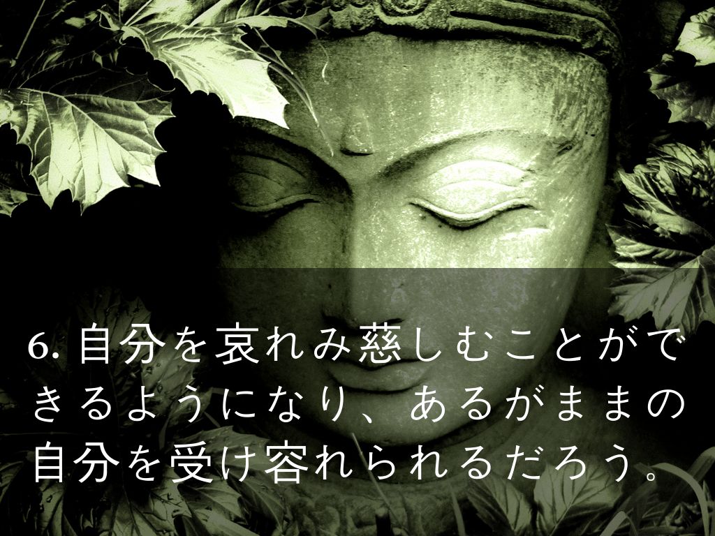 6. 自分を哀れみ慈しむことができるようになり、あるがままの自分を受け容れられるだろう。