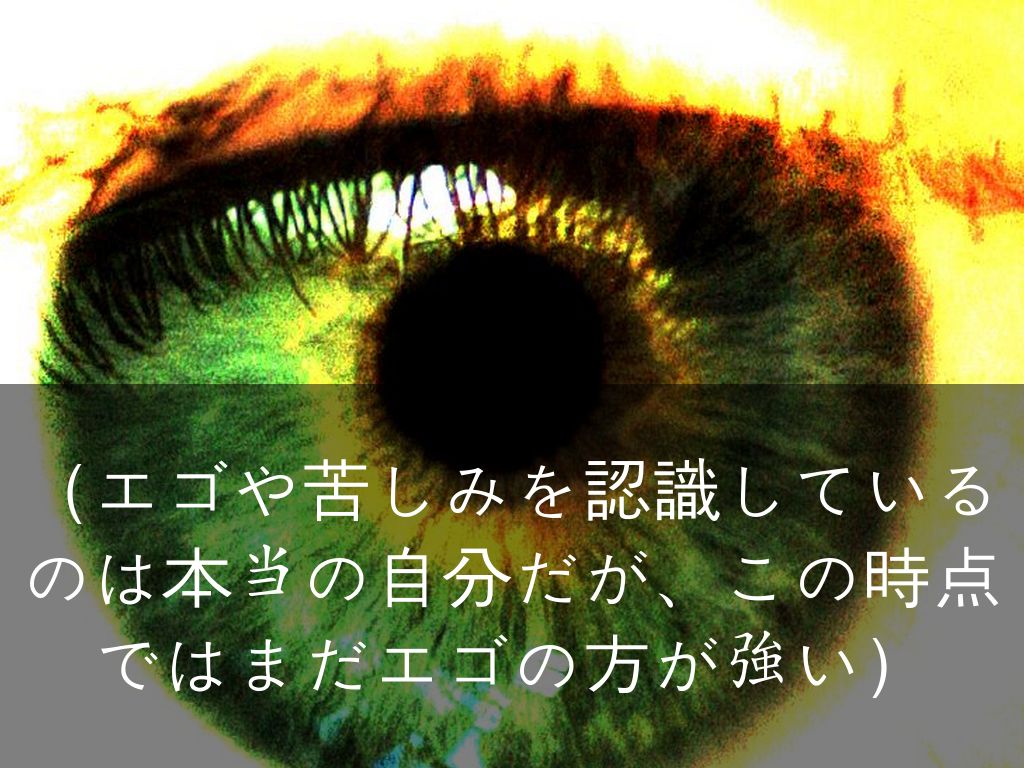 (エゴや苦しみを認識しているのは本当の自分だが、この時点ではまだエゴの方が強い)