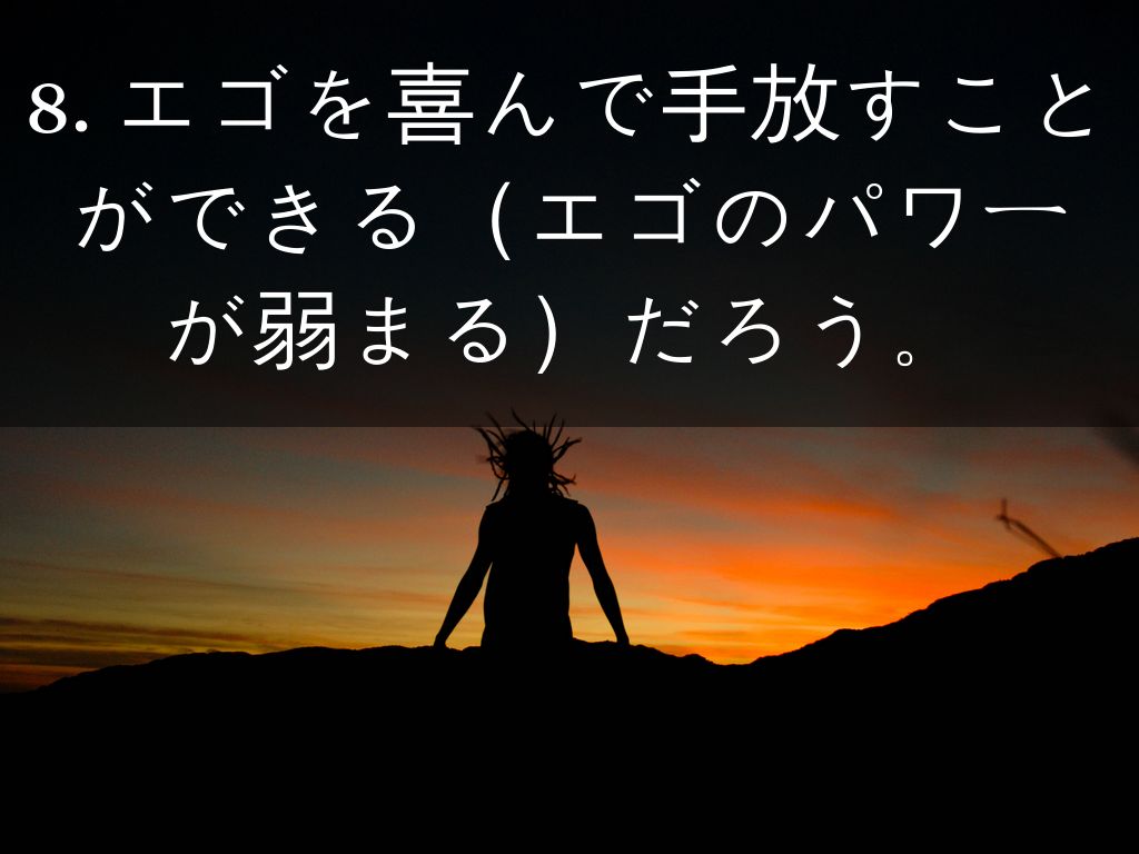 8. エゴを喜んで手放すことができる(エゴのパワーが弱まる)だろう。