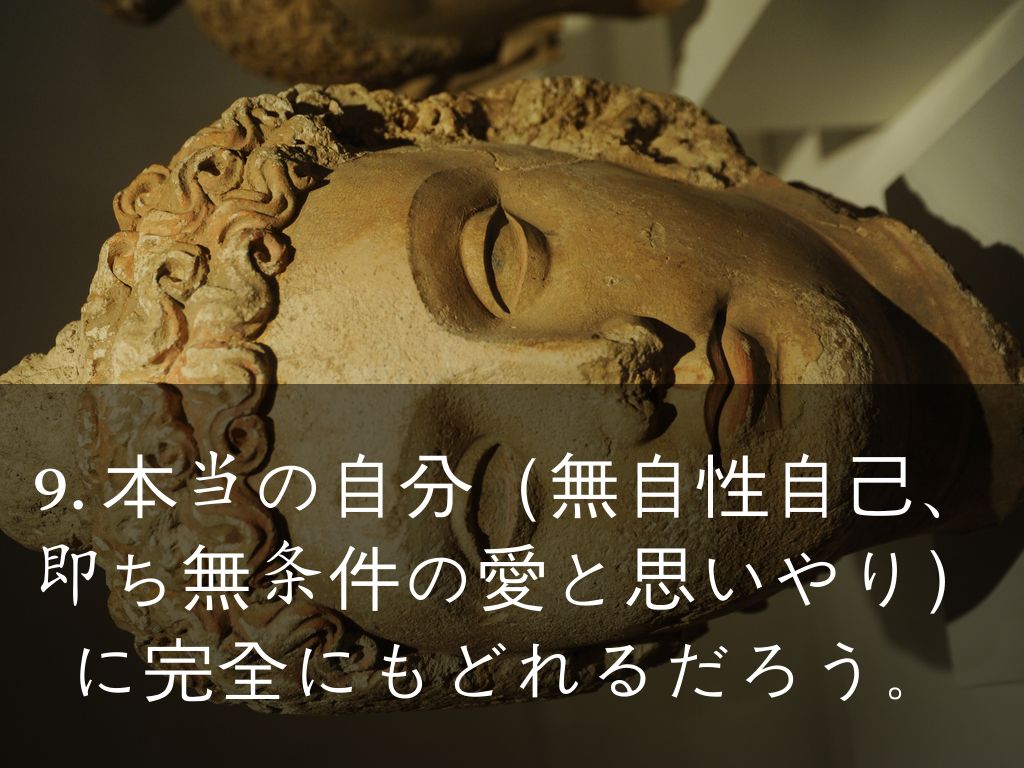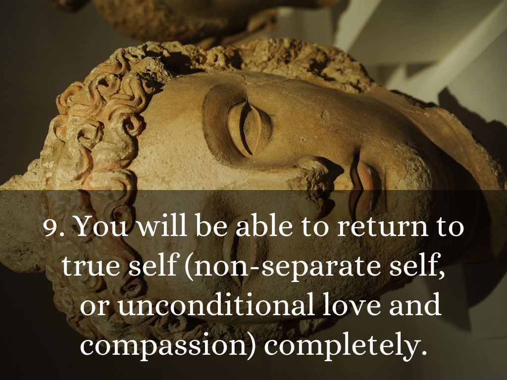 9. 本当の自分(無自性自己、即ち無条件の愛と思いやり)に完全にもどれるだろう。