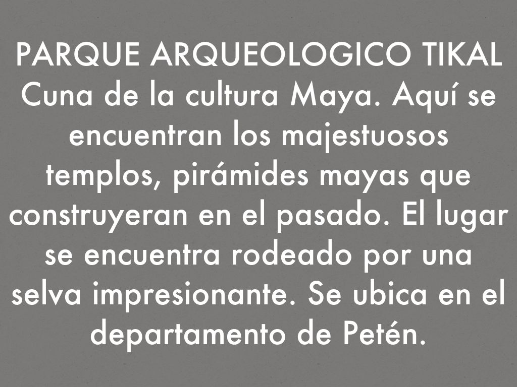 Cuna de la cultura Maya. Aquí se encuentran los majestuosos templos, pirámides mayas que construyeran en el pasado. El lugar se encuentra rodeado por una selva impresionante. Se ubica en el departamento de Petén.