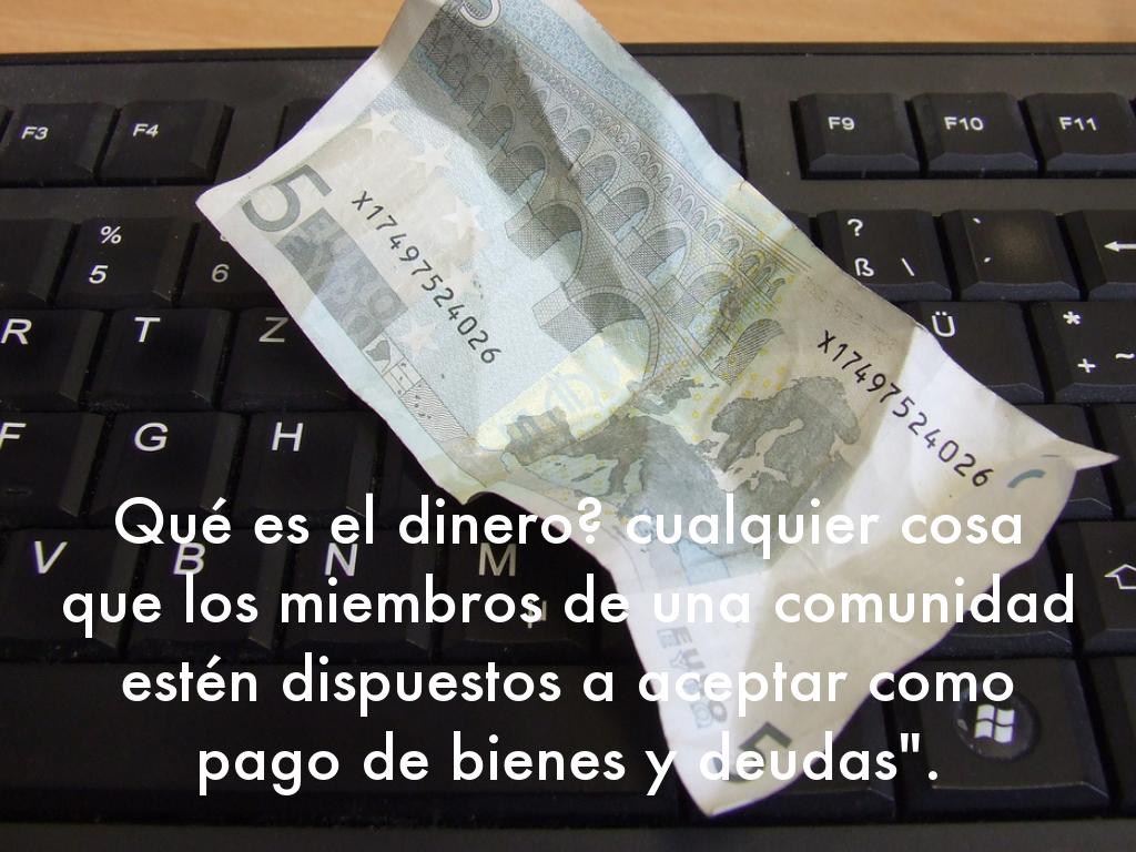 Qué es el dinero? cualquier cosa que los miembros de una comunidad estén dispuestos a aceptar como pago de bienes y deudas".