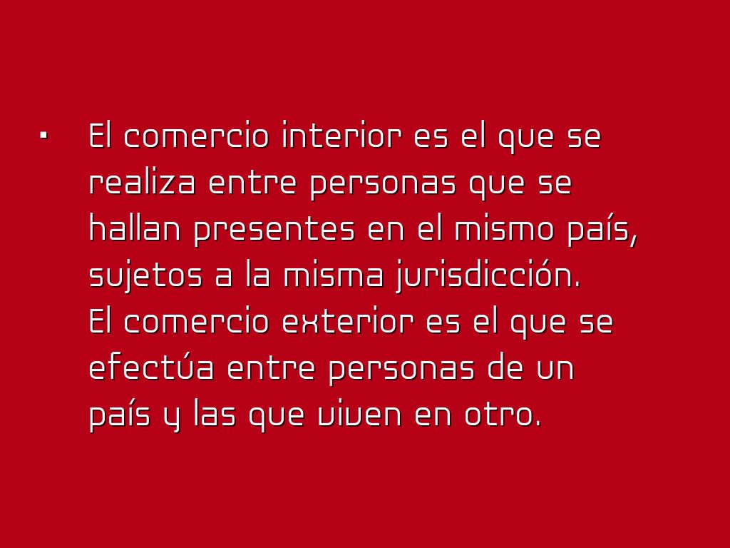 El comercio exterior es el que se efectúa entre personas de un país y las que viven en otro.
