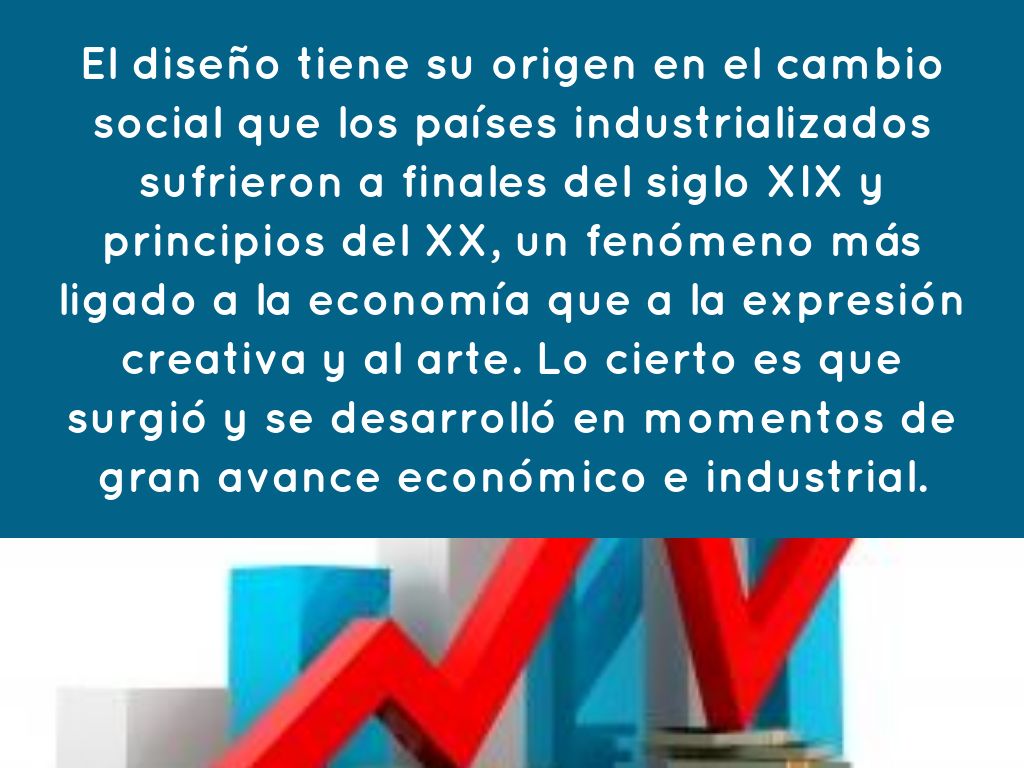 El diseño tiene su origen en el cambio social que los países industrializados sufrieron a finales del siglo XIX y principios del XX, un fenómeno más ligado a la economía que a la expresión creativa y al arte. Lo cierto es que surgió y se desarrolló en momentos de gran avance económico e industrial.