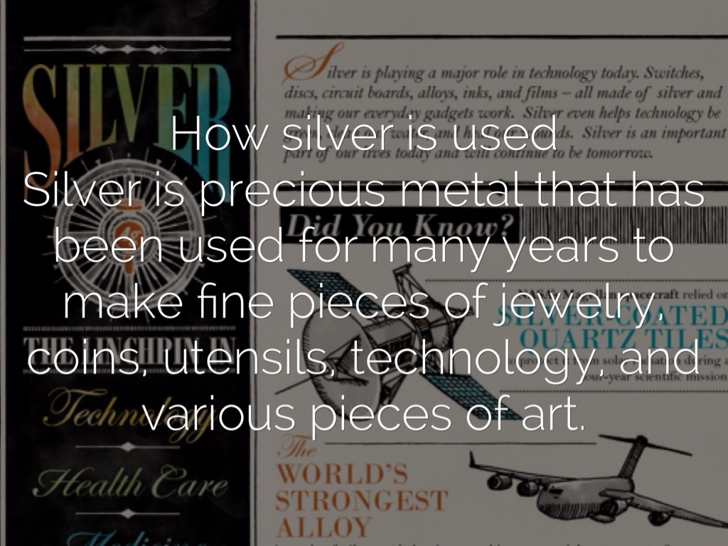 How silver is used Silver is precious metal that has been used for many years to make fine pieces of jewelry, coins, utensils, technology, and various pieces of art.