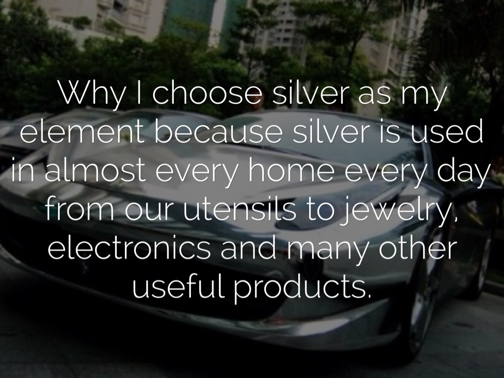 Why I choose silver as my element because silver is used in almost every home every day from our utensils to jewelry, electronics and many other useful products.