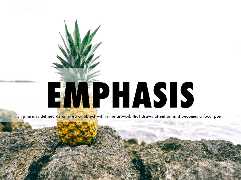 Emphasis is defined as an area or object within the artwork that draws attention and becomes a focal point