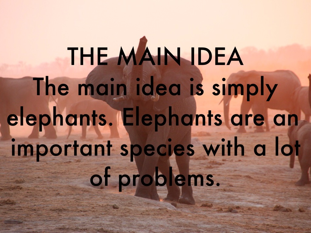 The main idea is simply elephants. Elephants are an important species with a lot of problems.