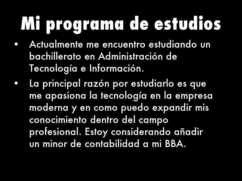 La principal razón por estudiarlo es que me apasiona la tecnología en la empresa moderna y en como puedo expandir mis conocimiento dentro del campo profesional. Estoy considerando añadir un minor de contabilidad a mi BBA.