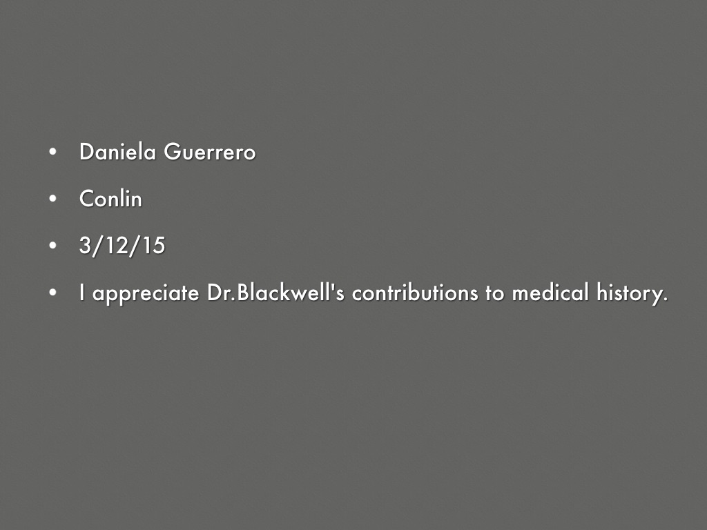 I appreciate Dr.Blackwell's contributions to medical history.
