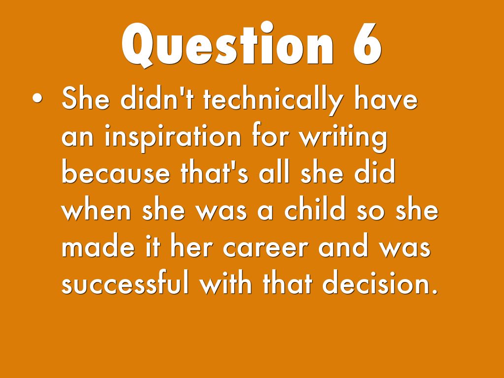 She didn't technically have an inspiration for writing because that's all she did when she was a child so she made it her career and was successful with that decision.