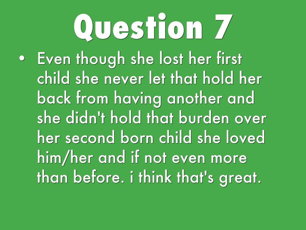 Even though she lost her first child she never let that hold her back from having another and she didn't hold that burden over her second born child she loved him/her and if not even more than before. i think that's great.
