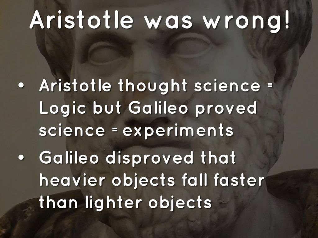 Aristotle thought science = Logic but Galileo proved science =experiments