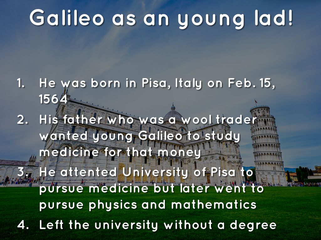 He attented University of Pisa to pursue medicine but later went to pursue physics and mathematics