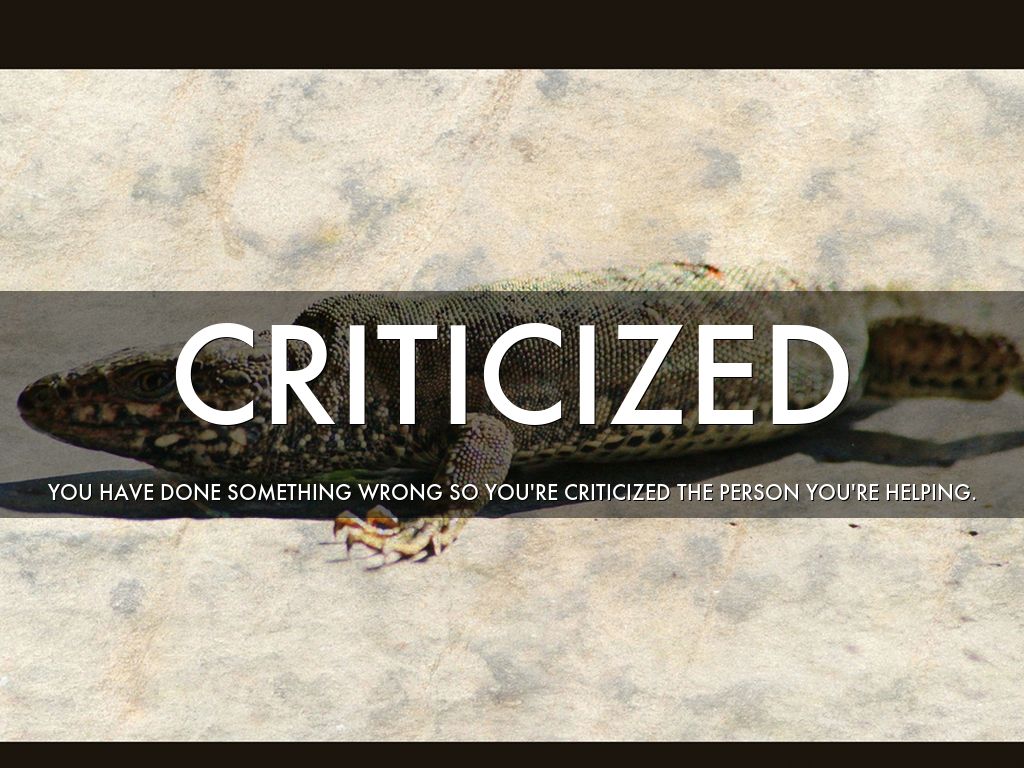 YOU HAVE DONE SOMETHING WRONG SO YOU'RE CRITICIZED THE PERSON YOU'RE HELPING.