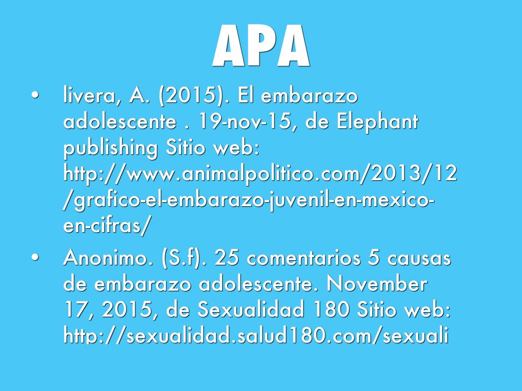 livera, A. (2015). El embarazo adolescente . 19-nov-15, de Elephant publishing Sitio web: