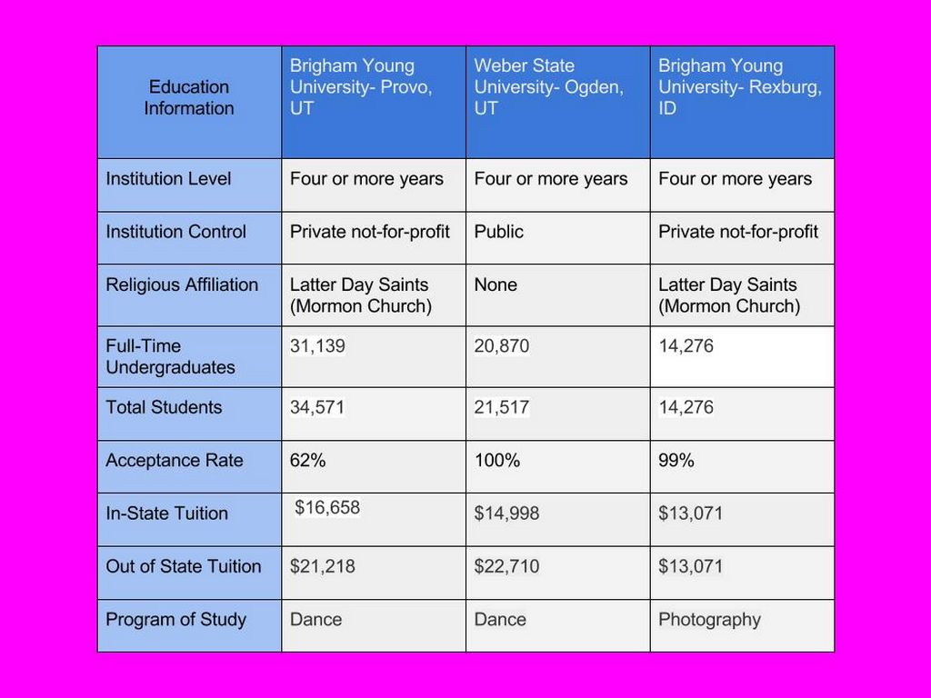 Dance 1, Dance 2, Advanced Dance, Dance Team