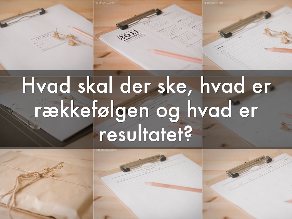 Hvad skal der ske, hvad er rækkefølgen og hvad er resultatet?