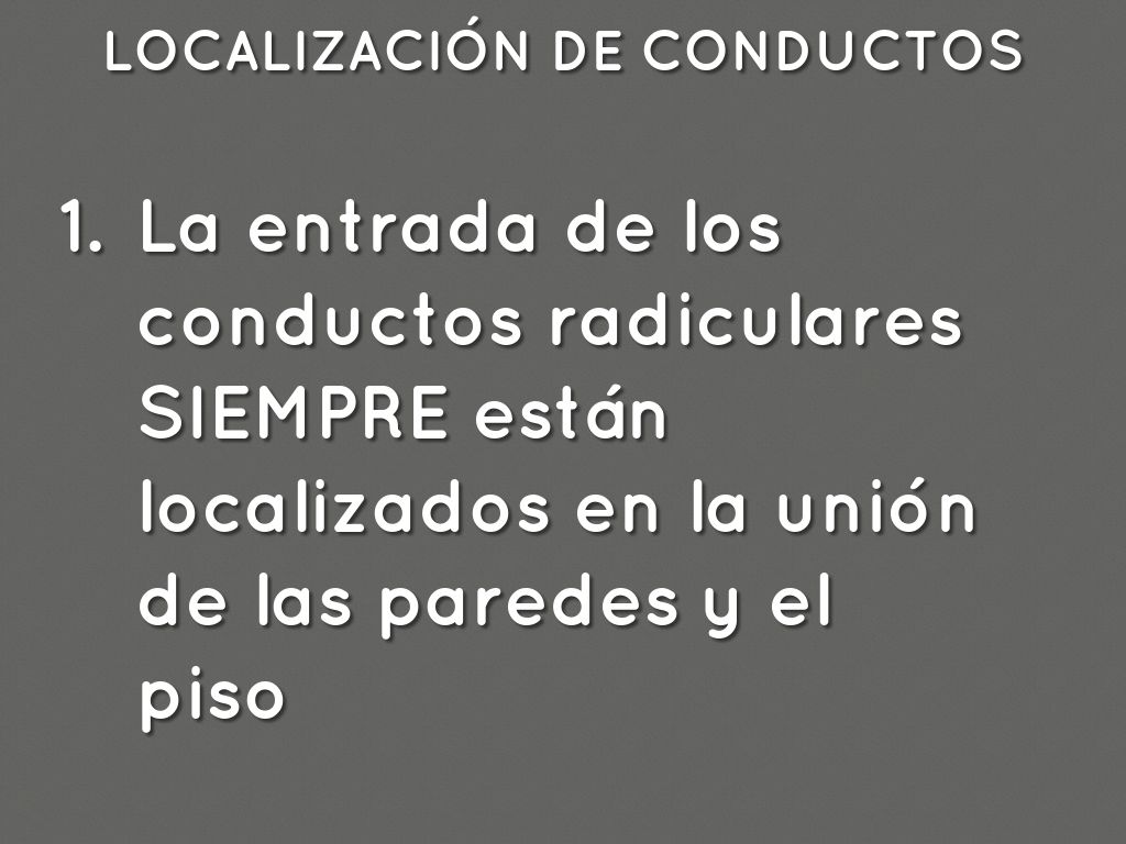 La entrada de los conductos radiculares SIEMPRE están localizados en la unión de las paredes y el piso