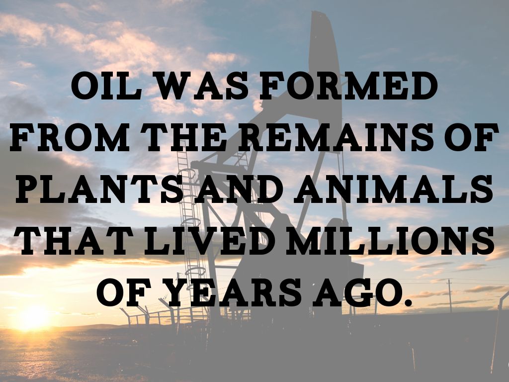 oil was formed from the remains of plants and animals that lived millions of years ago.