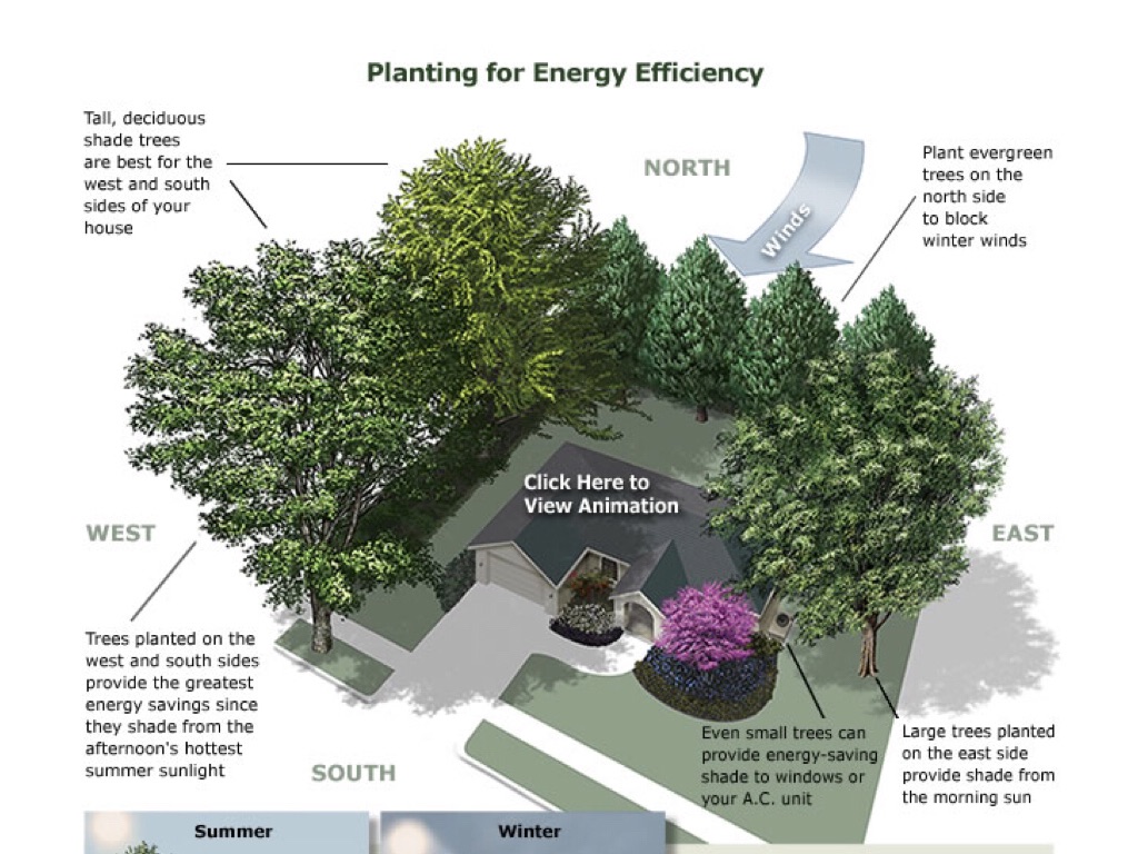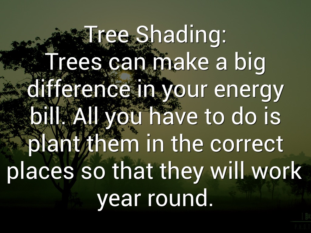 Tree Shading: Trees can make a big difference in your energy bill. All you have to do is plant them in the correct places so that they will work year round.