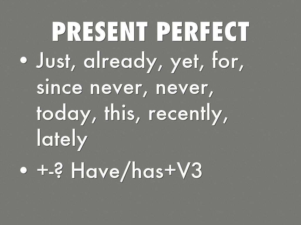 Just, already, yet, for, since never, never, today, this, recently, lately
