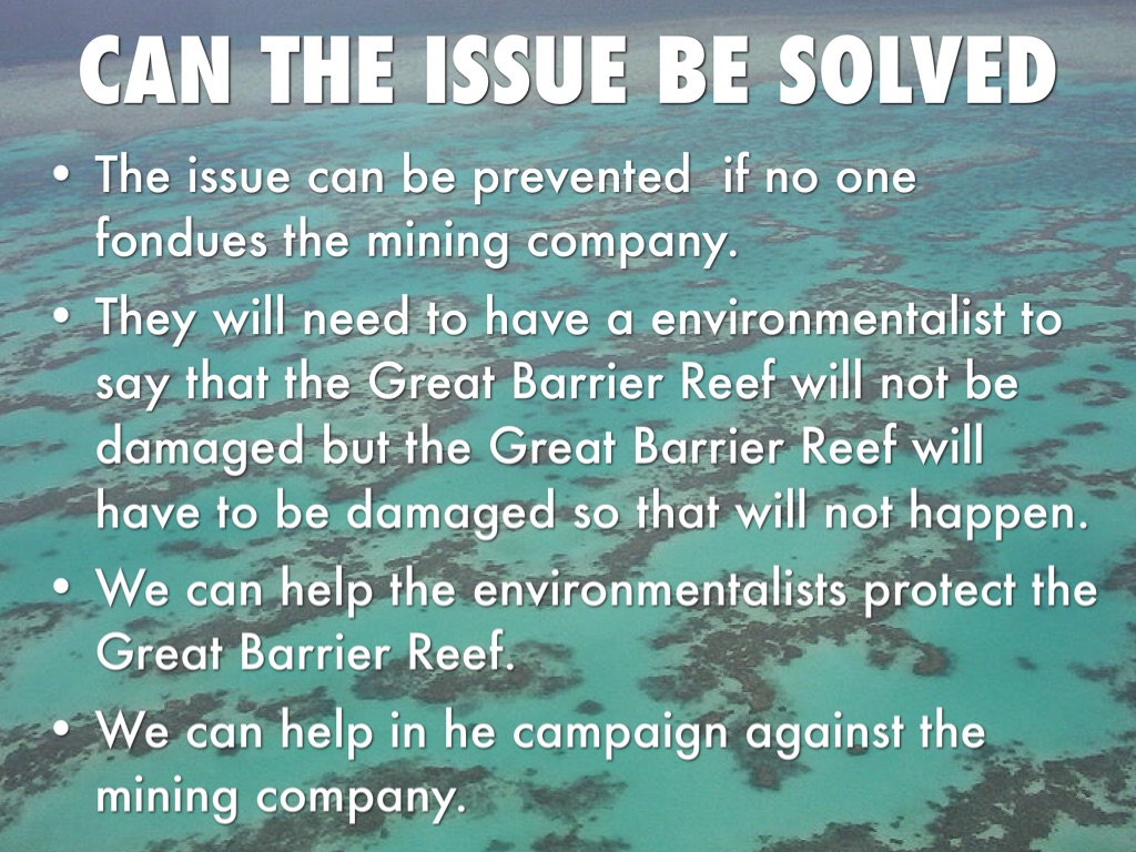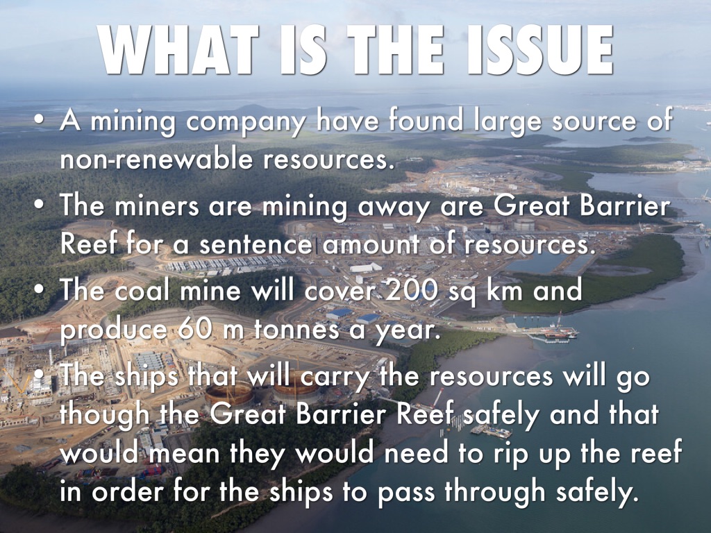 The ships that will carry the resources will go though the Great Barrier Reef safely and that would mean they would need to rip up the reef in order for the ships to pass through safely.