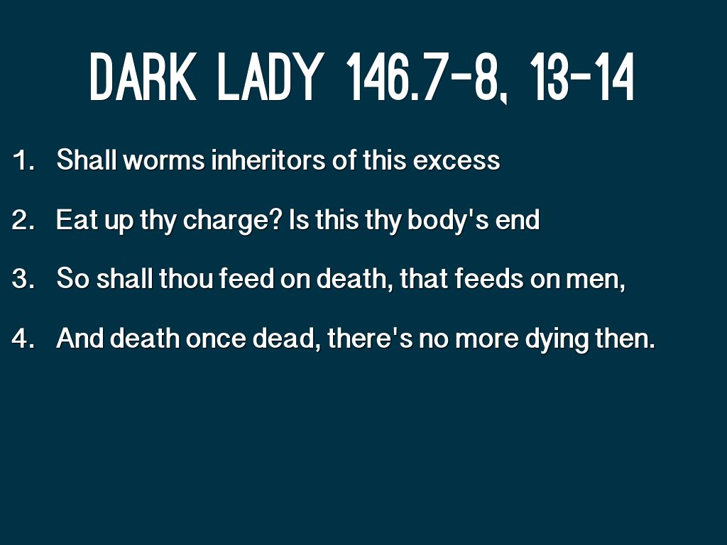Shakespeare, William. "Sonnet CXLVI." Shakespeare's Sonnets. N.p.. Web. 8 Nov 2013.
