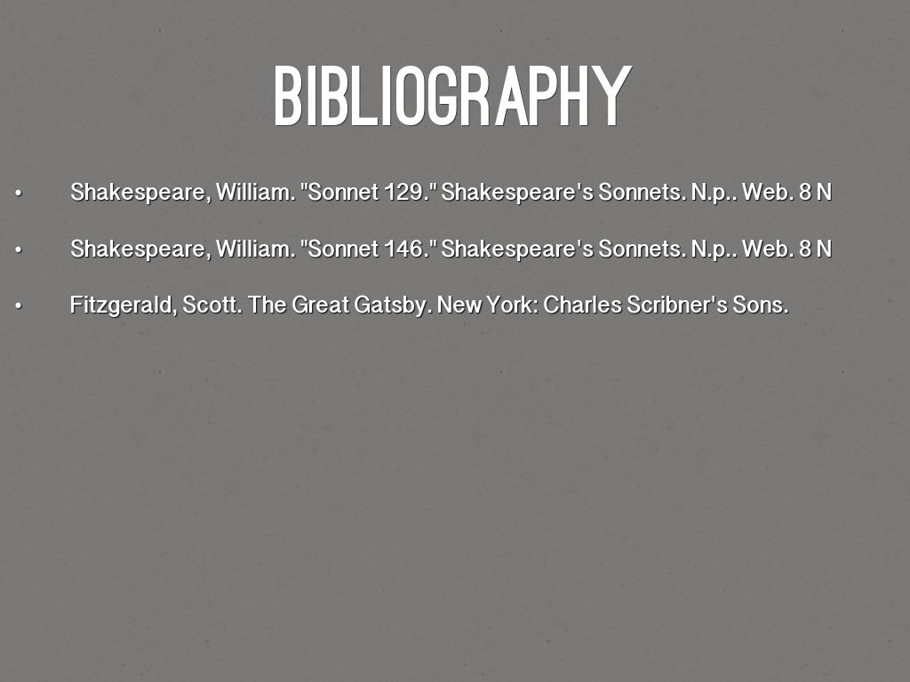 Shakespeare, William. "Sonnet CXXIX." Shakespeare's Sonnets. N.p.. Web. 8 Nov 2013.